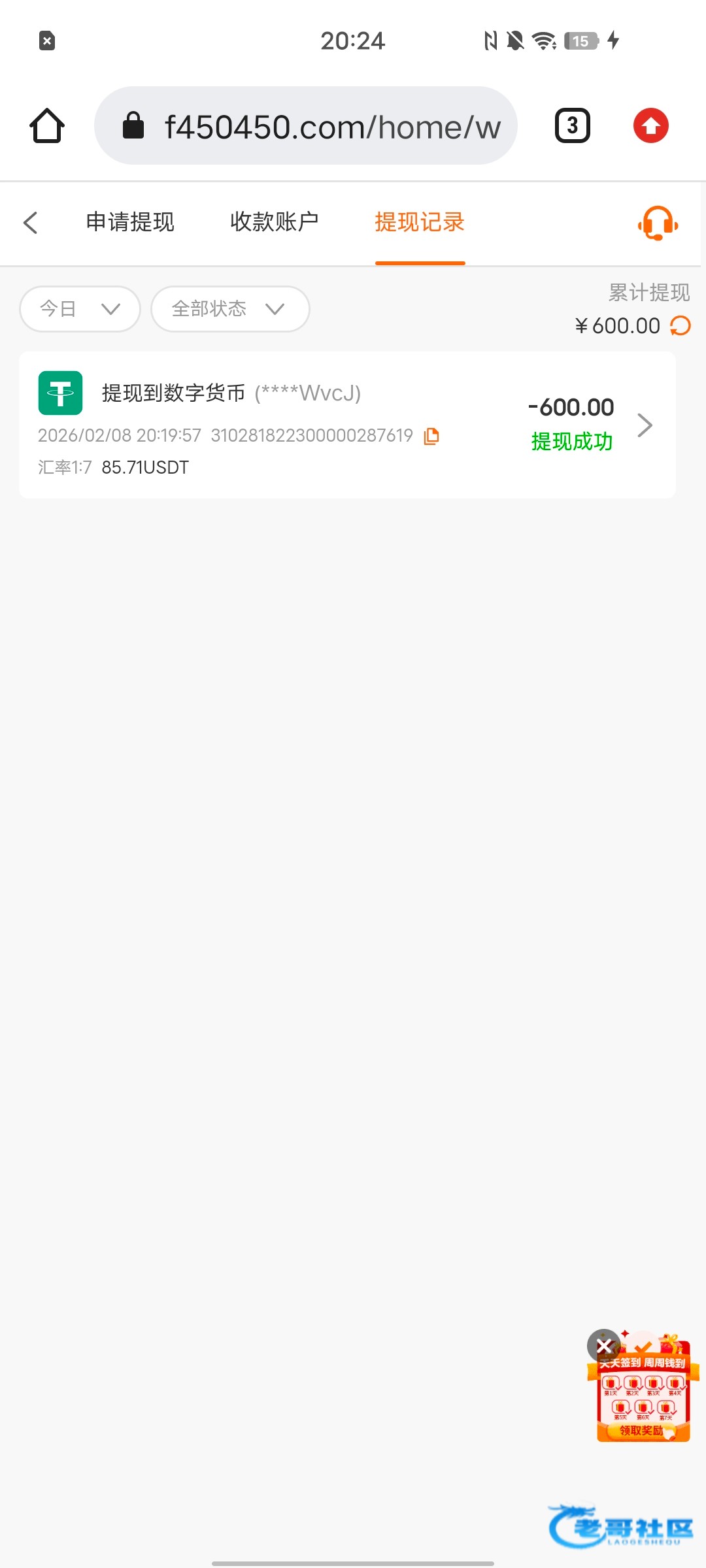 @likezhutou3 ,上面写要发短信但是号码都没写,估计也是黑台钱包提现通道好像都没有