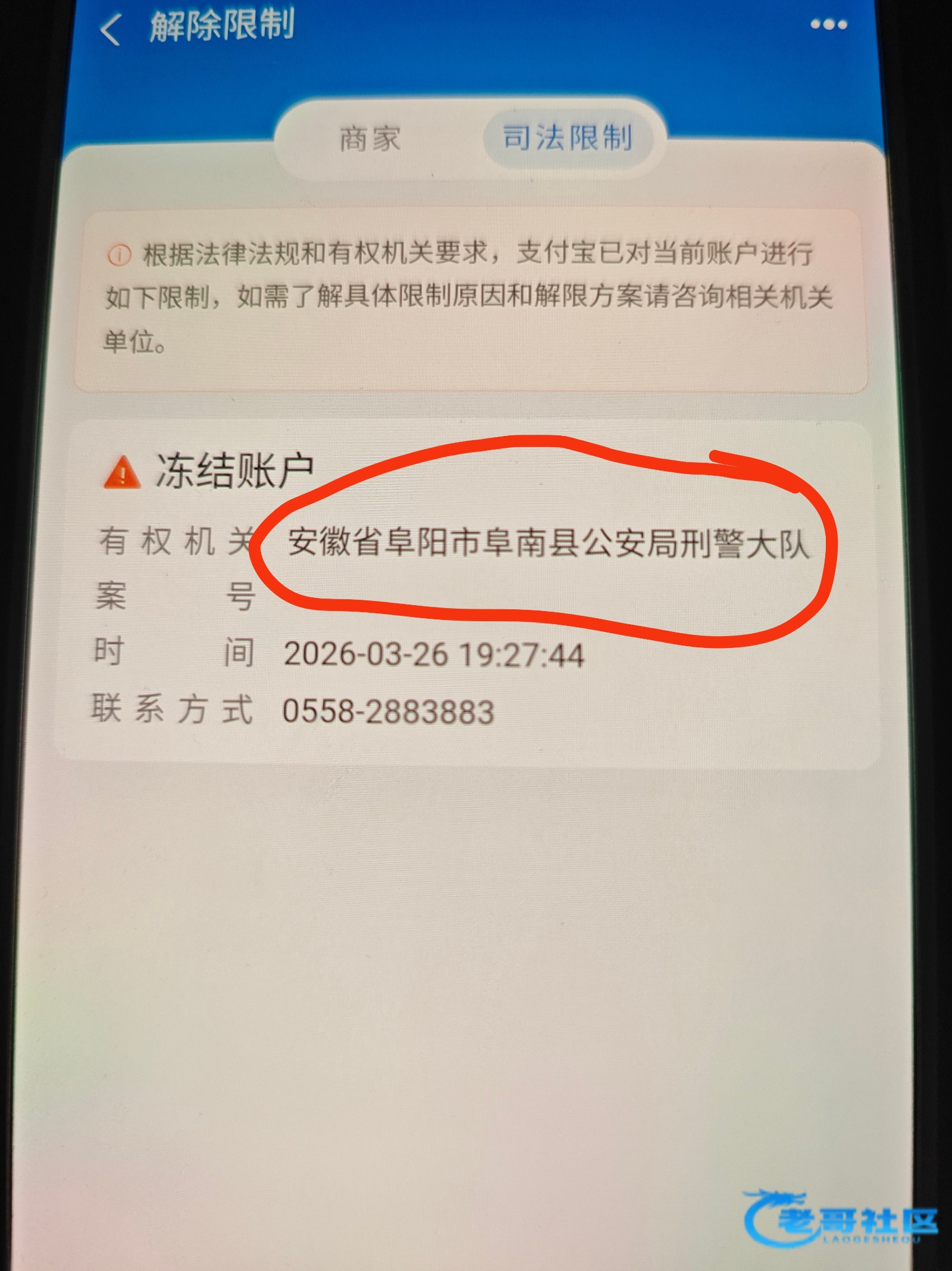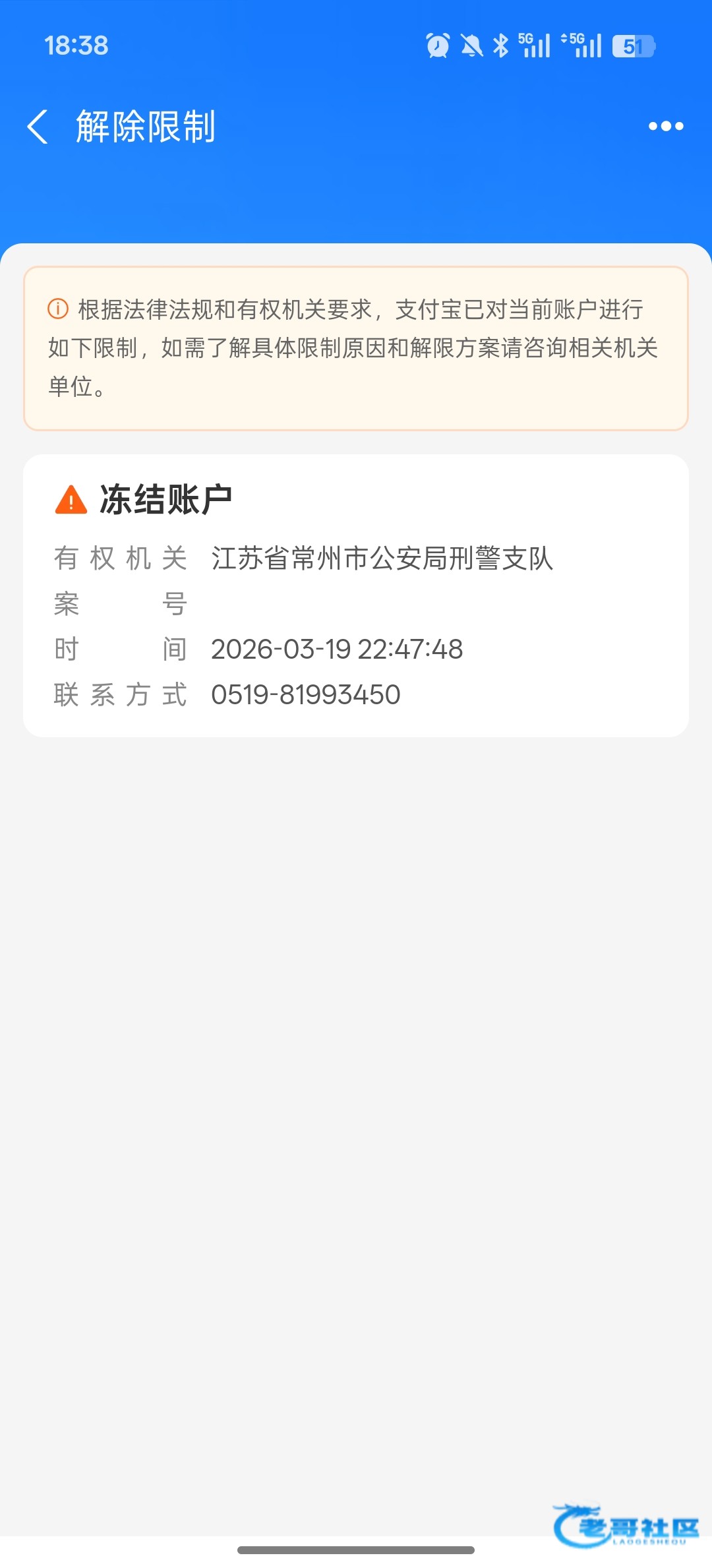 第二张图不是有联系方式吗,打过去问啊,问几级涉案需要退赔多少才能解,我之前银行卡也是被江苏都冻了然后要自己联系处理才给解冻不然一直续冻。只要不是一级涉案就不用担心,叔叔不会主动找你,其他支付宝不受限制换个支付宝永就行了