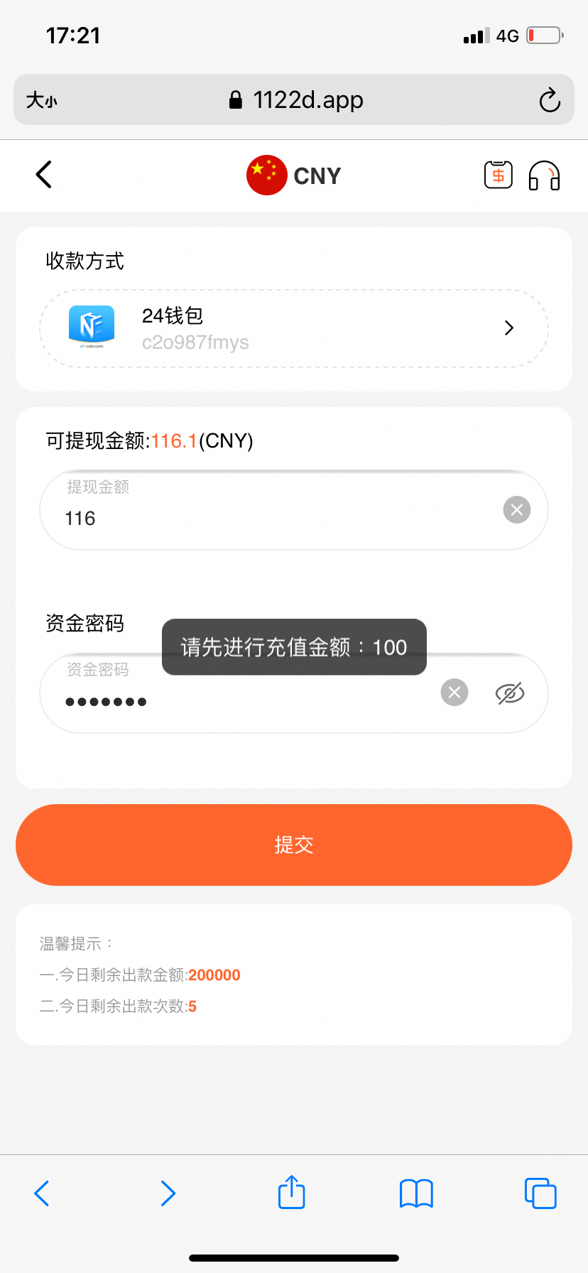 我冲了100 不给出说什么财务波动等下午五点 直接卸载了