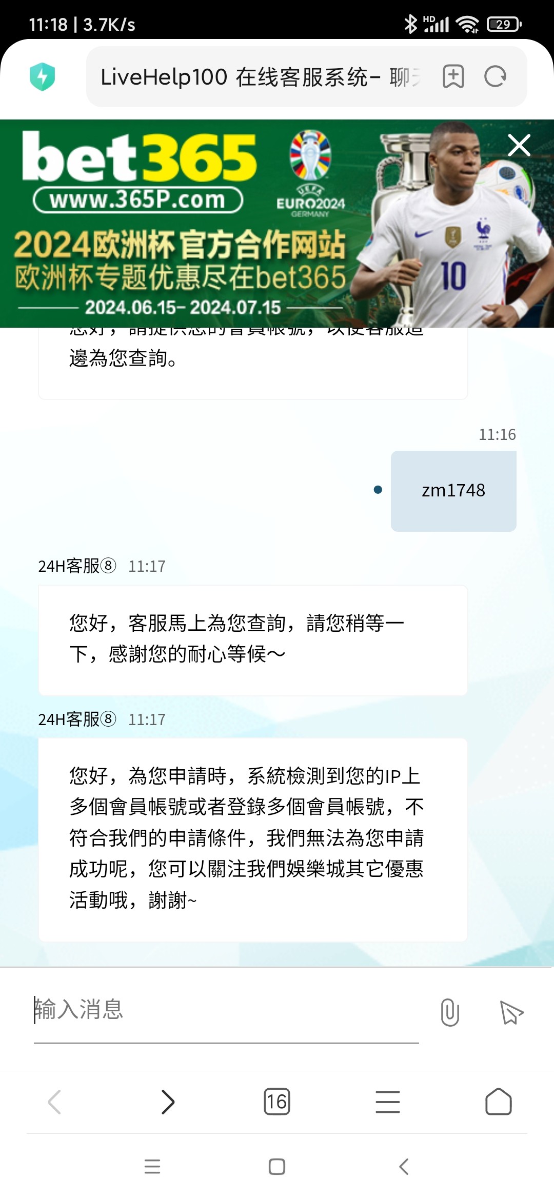 您好,此項優惠活動是需要提交系統進行申請的哦,系統檢測到您的IP上多個會員帳號或者登錄多個會員帳號,不符合我們的申請條件,請您諒解無法為您申請成功,請您關注我們娛樂城其他優惠活動呢,謝謝~
