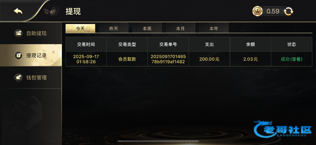 申请提现彩金 ID
