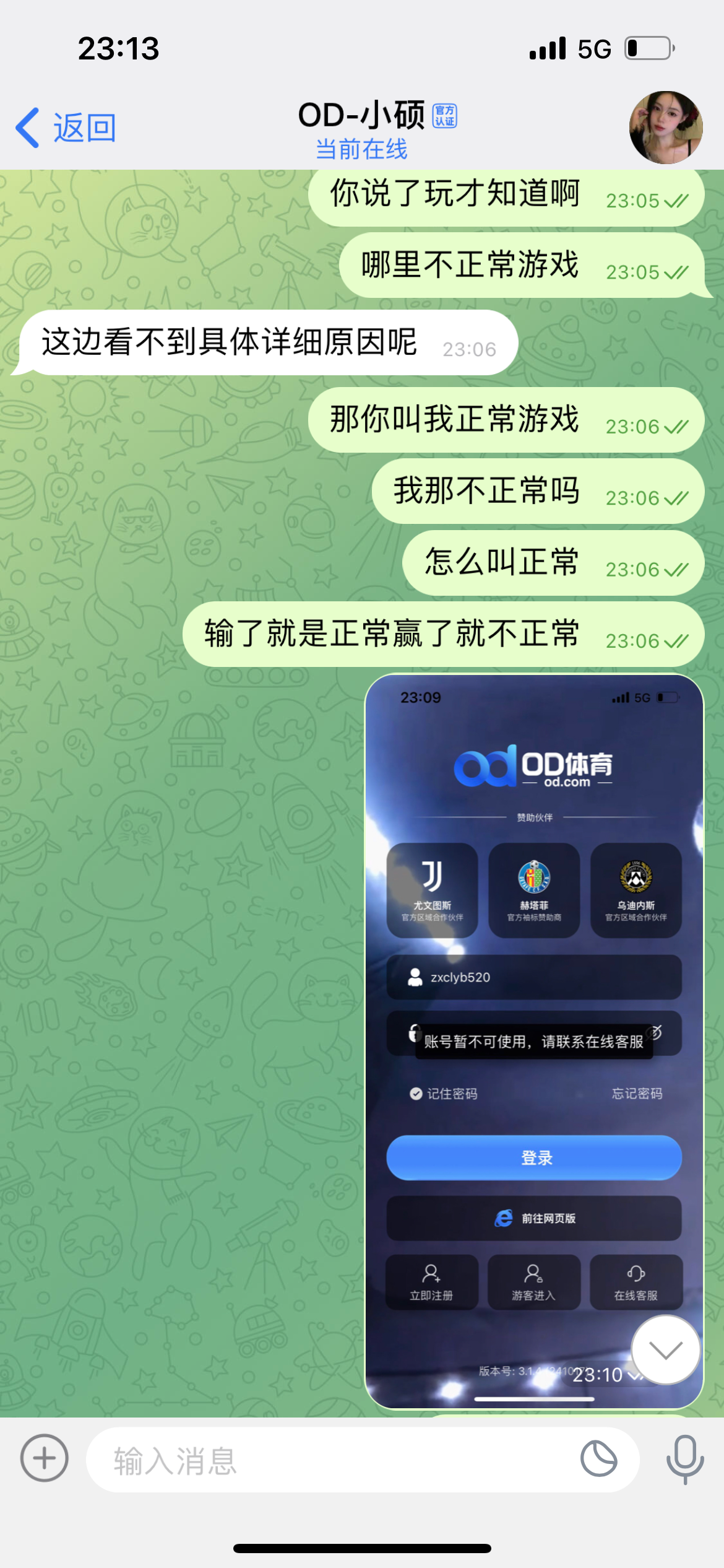 充值100打上1k提现直接被黑,说什么违规操作,正常摇电子都说违规,玩不起,输了就不违规赢了就违规,本金也不退直接封号,注意一下别玩。