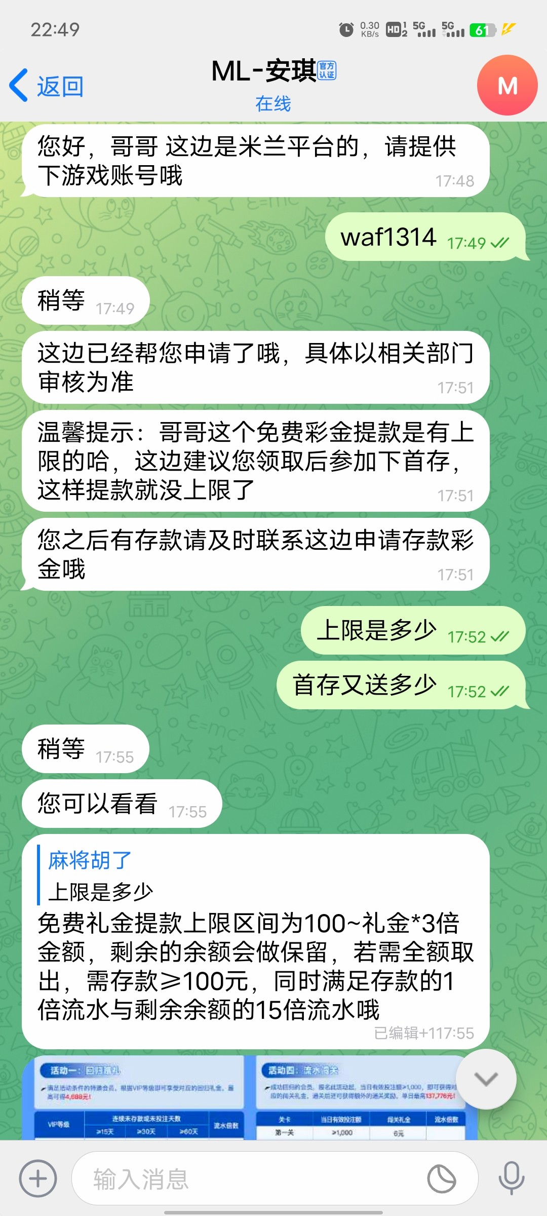 米兰体育回访158有号的可以碰一下 打了一百提现到账 milan.com