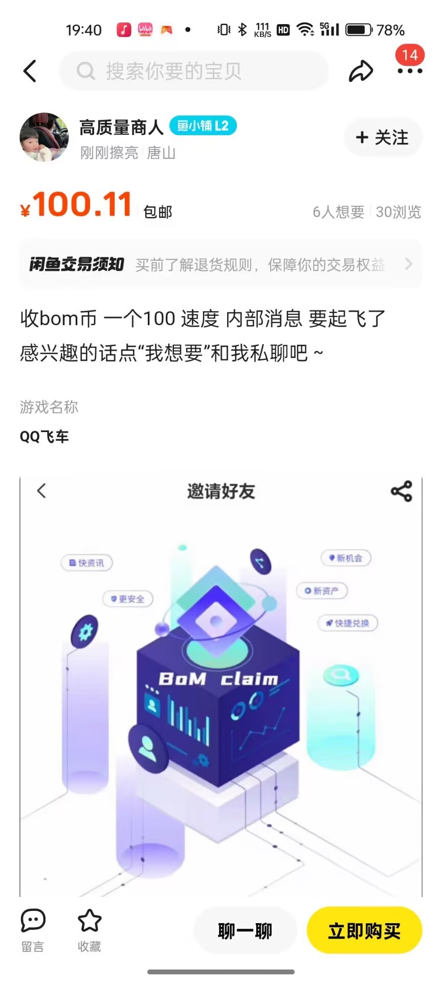 1个bom价值是10个u,也就是72人民币。花100买1个bom是脑子进水了吗?纯骗子