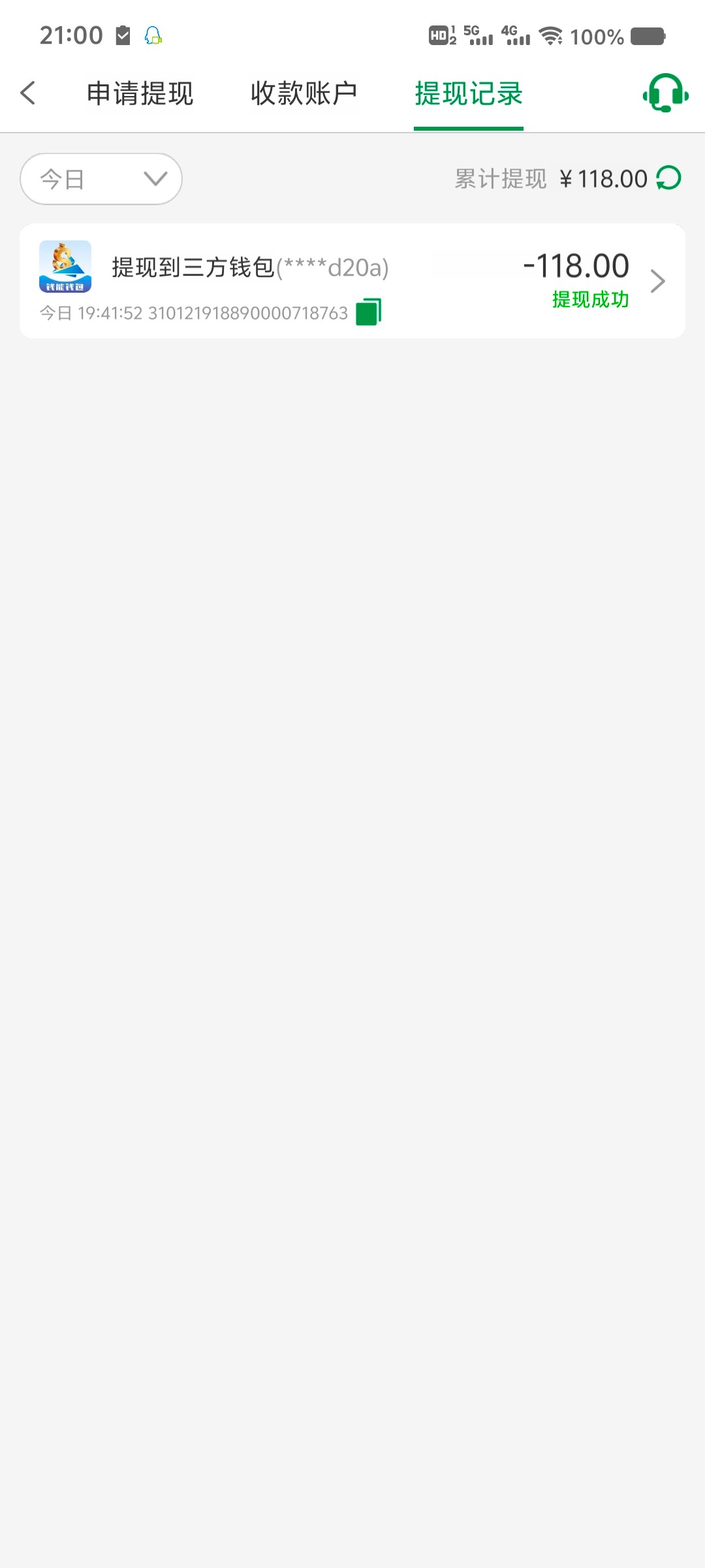提现了一次就没水了 一提现就没水了 又送回去100