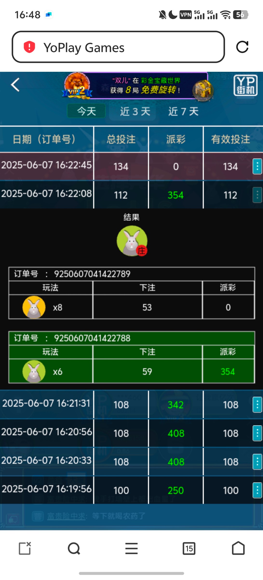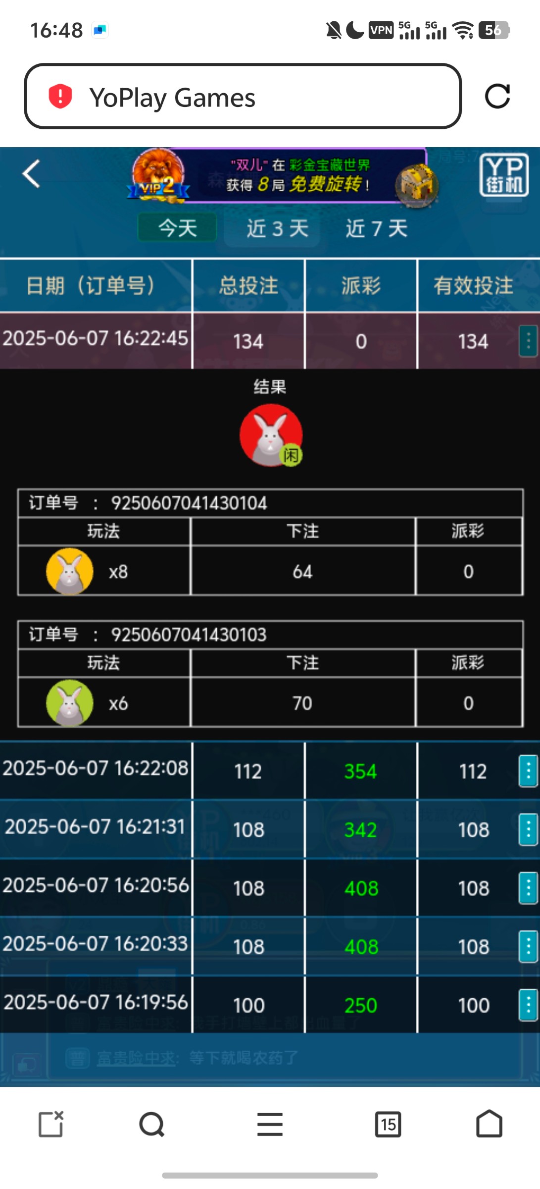 冲了400连中兔子长龙,给我黑款了,400出1500连中就给我黑了,今天太倒霉了,被黑了一张卡密,然后充值也被黑