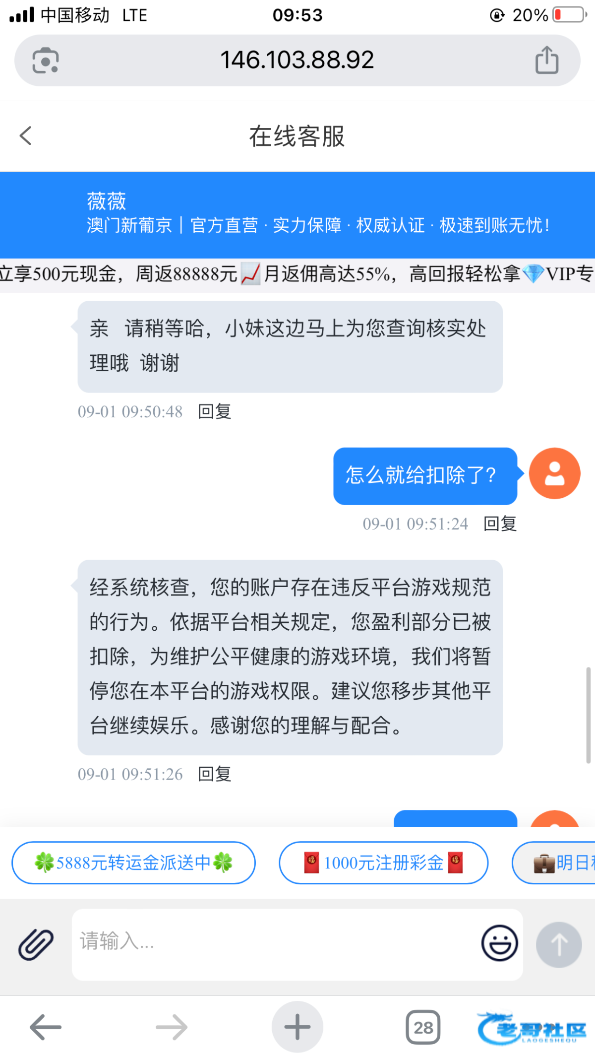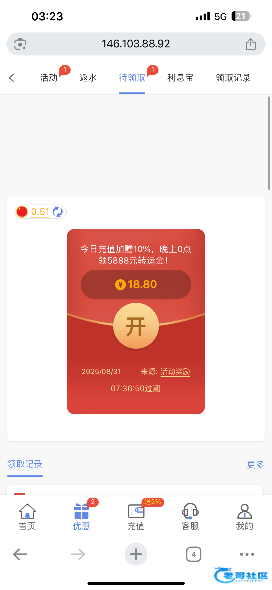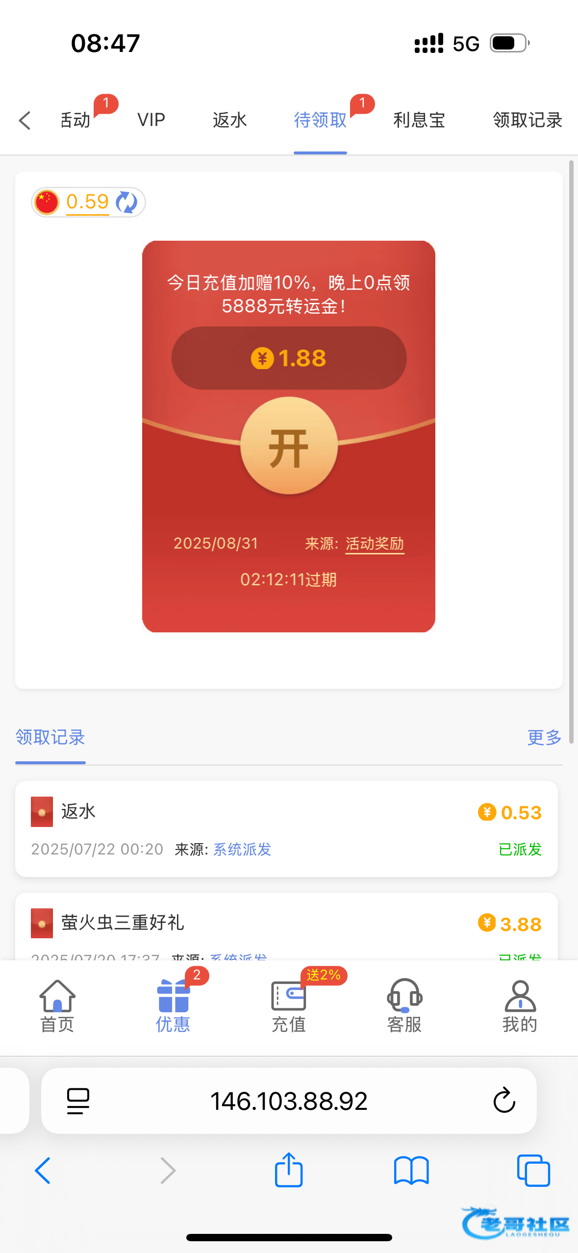 网站:新葡京.app,之前短信特邀注册的,然后充值过100,今天月初无聊登了好几个网站,发现这个网站有18.88,有号的去看一下,还出款了400
