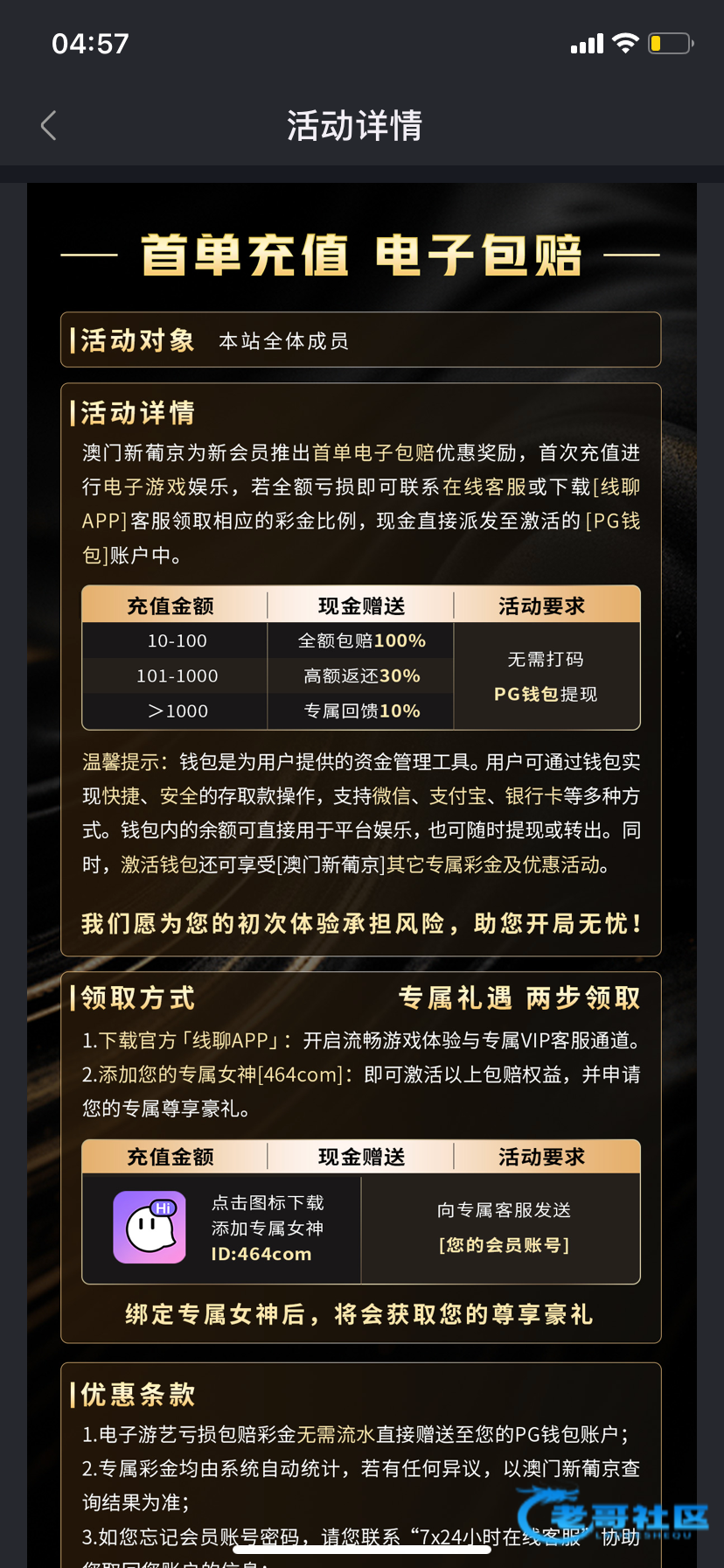 刚刚看到有老哥发这个帖子,说首单包赔,说他也申请到了,然后就去注册申请了,第1次注册这个平台,第1次注册这个钱包,然后垫子一点水都没有,几分钟就拉完了,去找客服说申请包赔,他查半天,后面直接说多ip,让他说账号他又说不出来,一直说多ip,给老哥们避一下坑